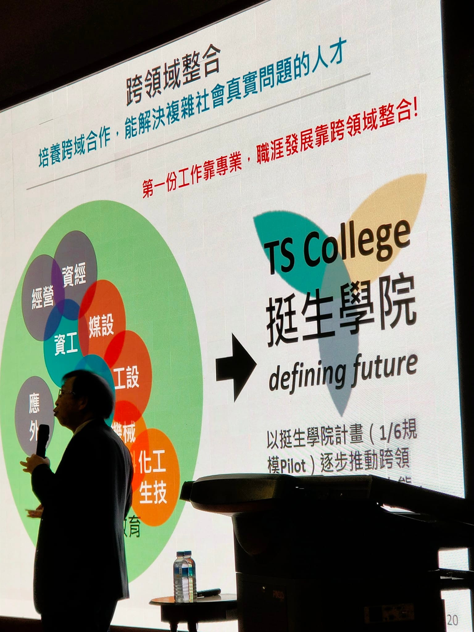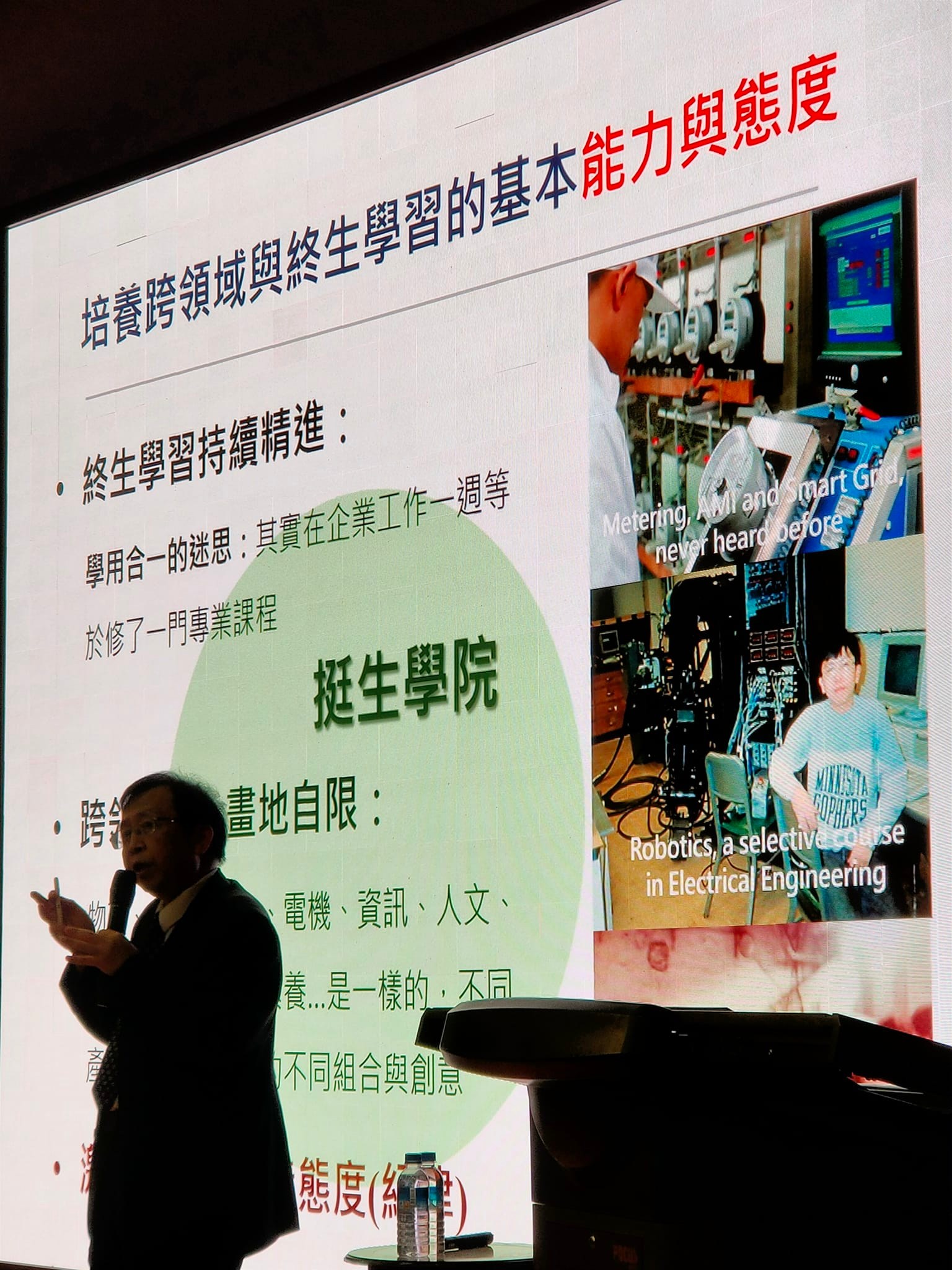 何校長以個人工作經驗為開場,提及學生就業第一份工作可能和科系,即所謂「專業」會有關係,然事實上在環境急速變化下,產業需要成長,組織變化也必然,因此現很多工作會消失將是常態。故此,學校在培育學生不用太早把學生劃分為那個科系、專業或領域,不同產業只是知識運用的不同組合和創意,學校要以培養學生跨領域專業能力為重要,以能解決複雜社會真實問題人才;更重要就是培養學生終生學習的能力和態度,個人故能持續成長。